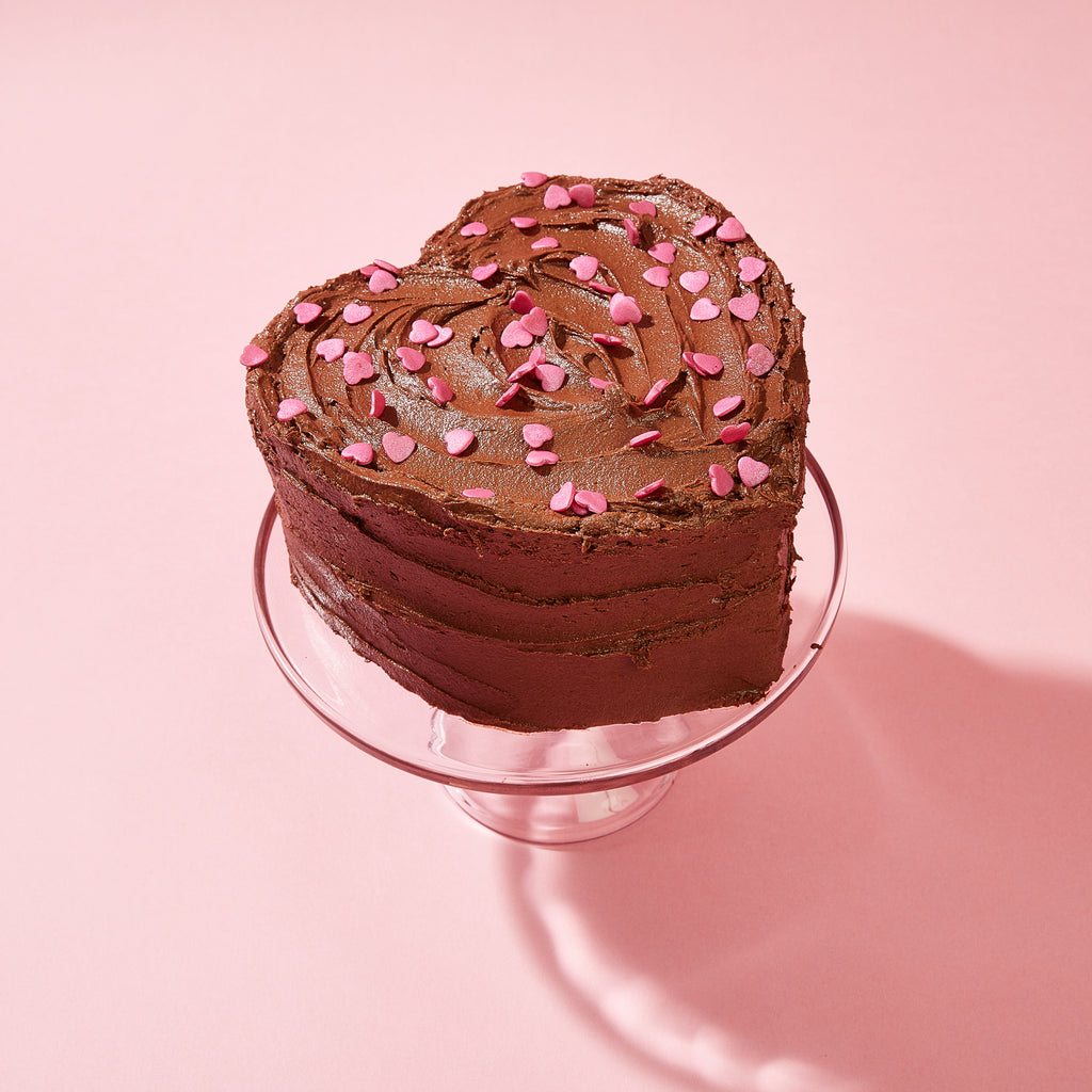 reemies best-seller Chocolate Cake with chocolate buttercream, crumbs with its soft scrumptious sponge, lathered in fluffy frosting, & stands out for its taste. A gorgeous heart shape for Valentines! Always handmade in our London kitchen, and hand delivered by our drivers right to your door.